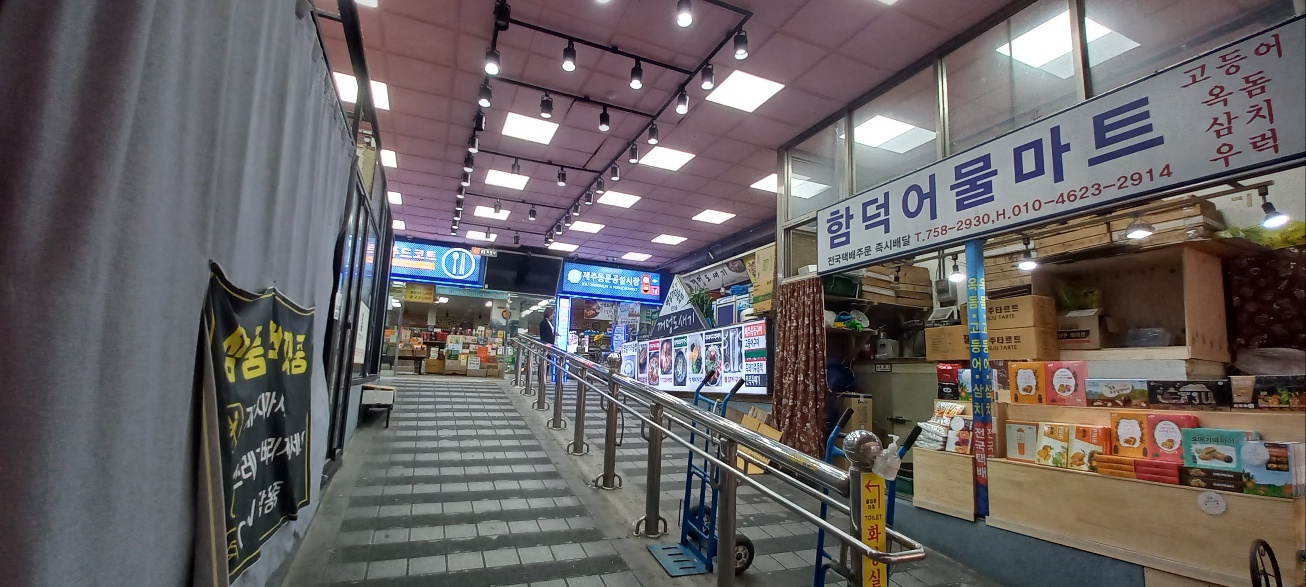 제주동문시장 내부 14시에 차를 반납하고 15시 대한항공으로 김포로 가야 한다.