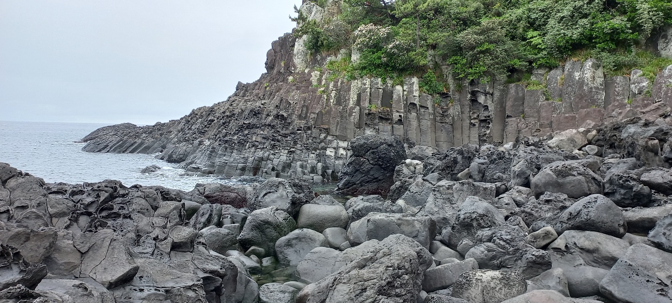 화산 용암이 흘러 내려오다 바닷물과 만나면서 담금질하듯 돌 결절이 사각 또는 육각형으로 형성되었다고 한다.
