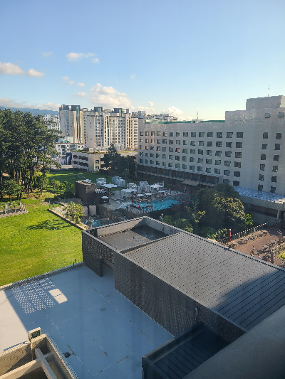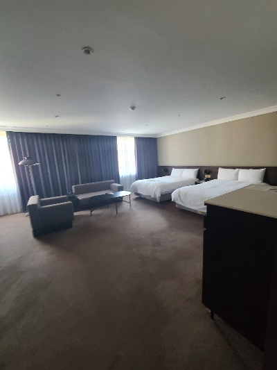 공항가기 쉽게 예약한 메종글래드. 4인실을 예약해서 더블베드 2개요! 뷰 보고 싶어서 고층했는데 괜찮은것 같아요!
