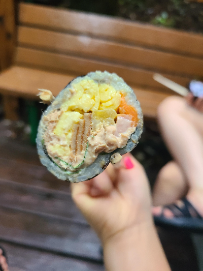 오름 가는길에 들러서 참치김밥과 매운고추김밥을 포장했어요. 사실 유명한 곳이긴 한데 그냥 김밥 맛이에요.
